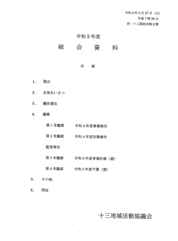 結びに、地域の皆様、大阪市立十三小学校、小学校PTA委員の皆さま、各自治会、各種団体の方々の旧年中のご尽力に感謝申し上げますとともに、引き続きご支援をお願いいたしまして、年頭のあいさつといたします。