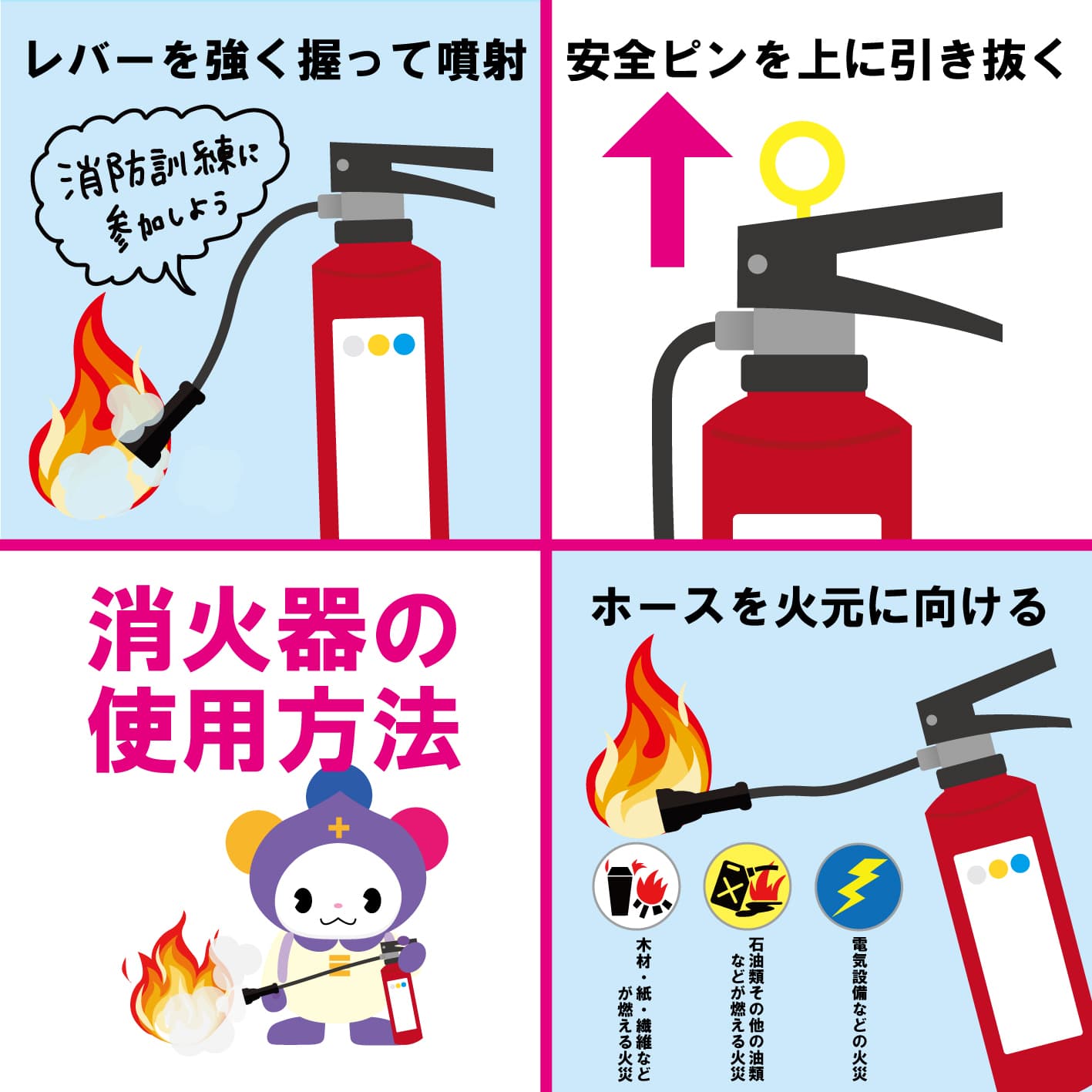 ・消化器の場所の確認をする(ない場合は、住宅用消化器を設置しましょう)