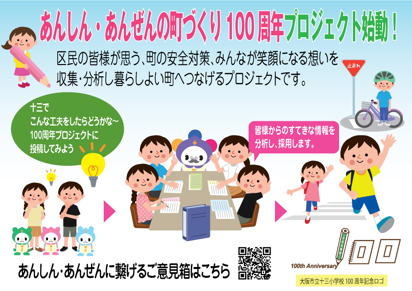 ※十三小学校創立100周年記念事業実行委員会では、現在、寄付活動は一切行っていませんのでご注意ください。