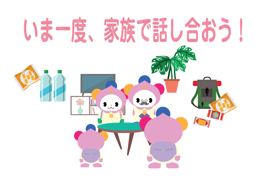 災害が起きたときにはどういう行動を取り、どういうことに注意するのか、家族とどうやって連絡を取ればいいのかなど、もしもの時を考えよう!